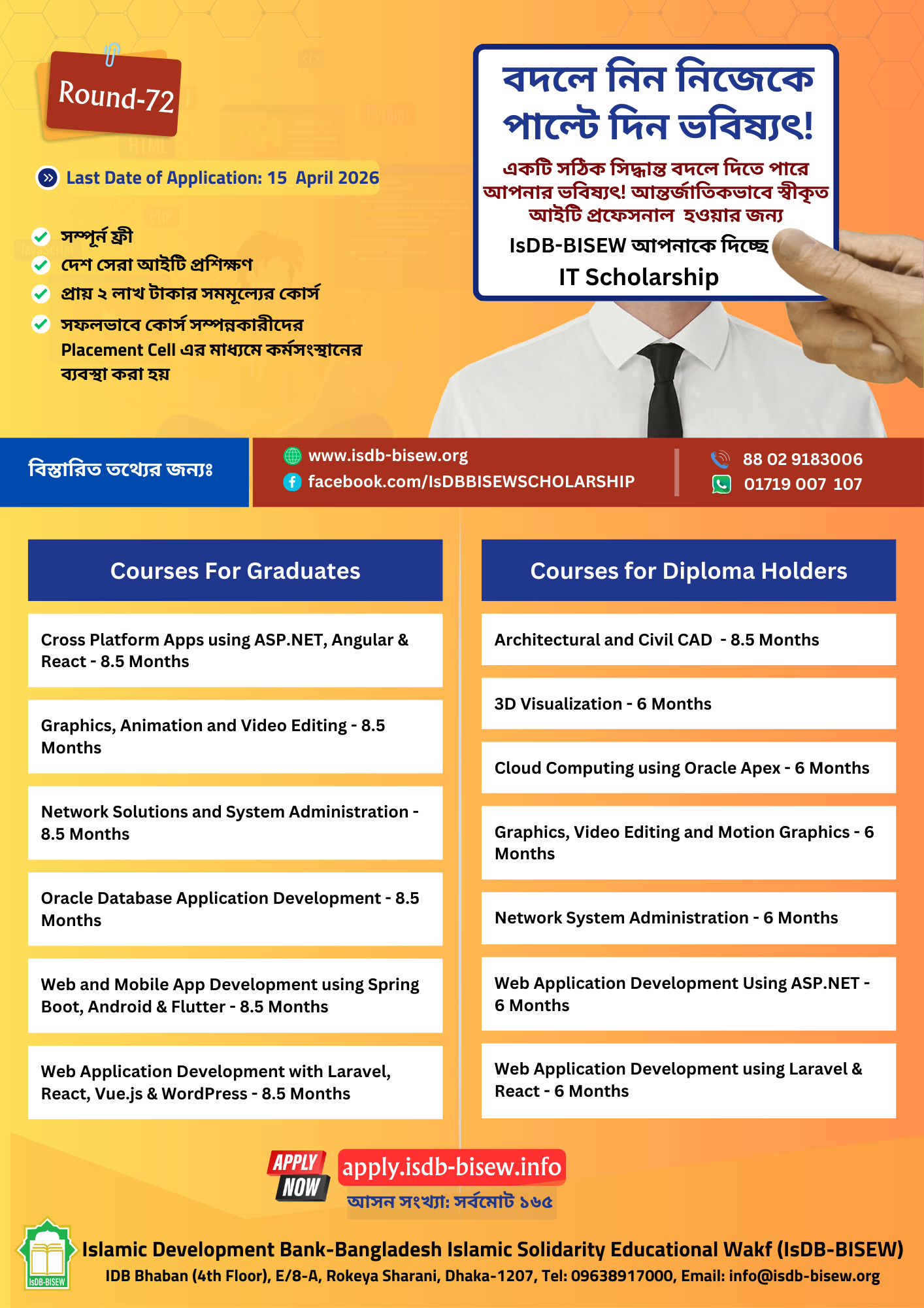 চূড়ান্ত প্রার্থী তালিকা ও সূচি (IsDB-BISEW IT SCHOLARSHIP PROGRAMME – Round 70)